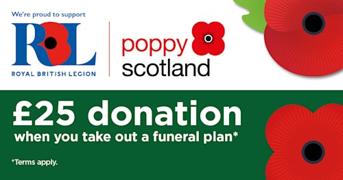 This year, over 500 funeral directors are on board to participate in our latest campaign. A donation of £25 will be made to the Royal British Legion or Poppyscotland for every eligible Golden Charter funeral plan purchased*.